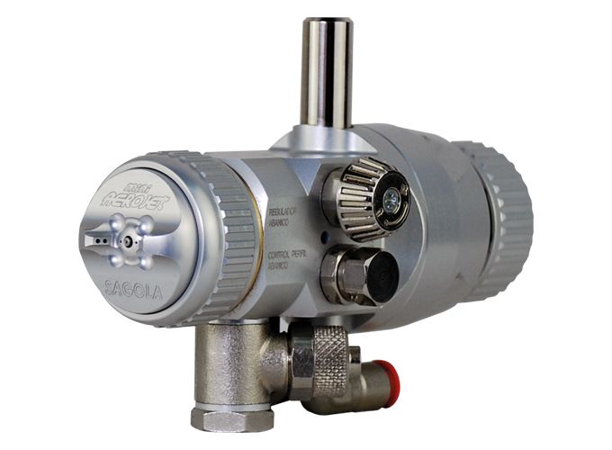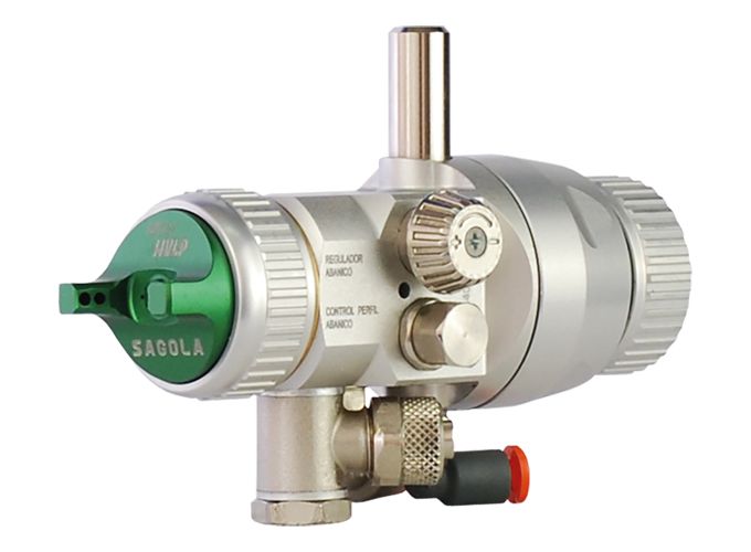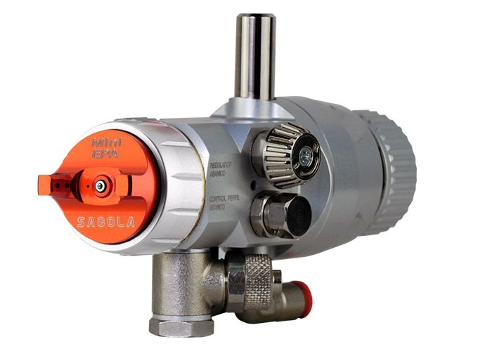 Le Mini V de Sagola est un petit pistolet automatique de haute précision, idéal pour les petites pièces ou les zones difficiles d'accès sur la chaîne de peinture.