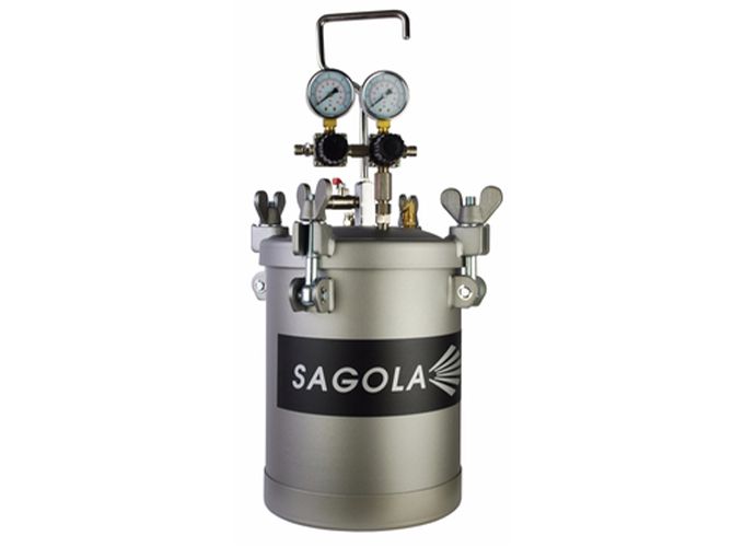 La Contenitore a pressione in acciaio Sagola 610 ha un capacità del serbatoio 10 L (2,64 US Gal) adatto a pitture a base solvente.